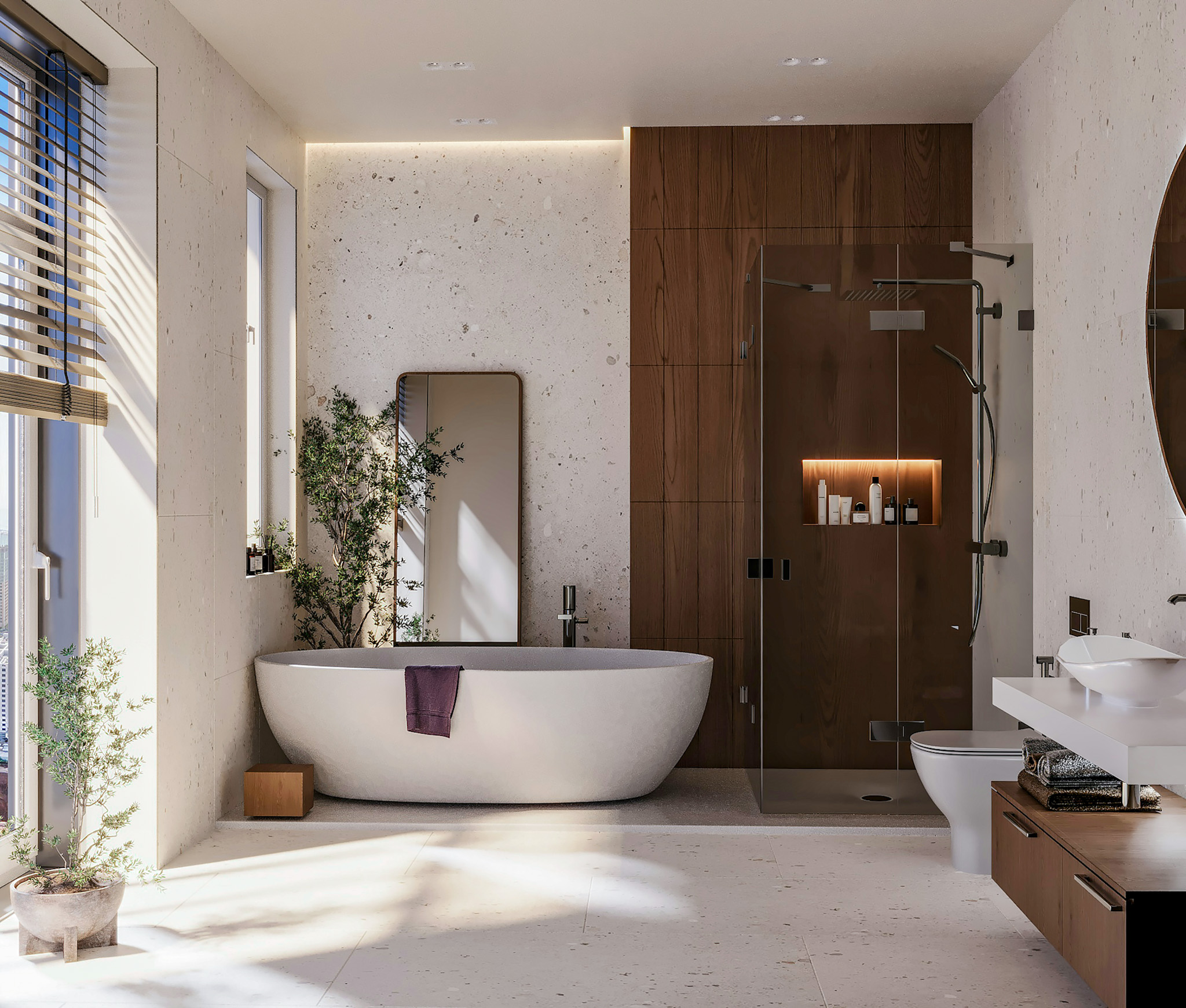 It depends on your lifestyle. Showers are more practical and space-saving, while tubs are great for families with small kids and add a luxury element. Many master baths now feature walk-in showers with frameless glass, while keeping at least one tub in the home for resale value.