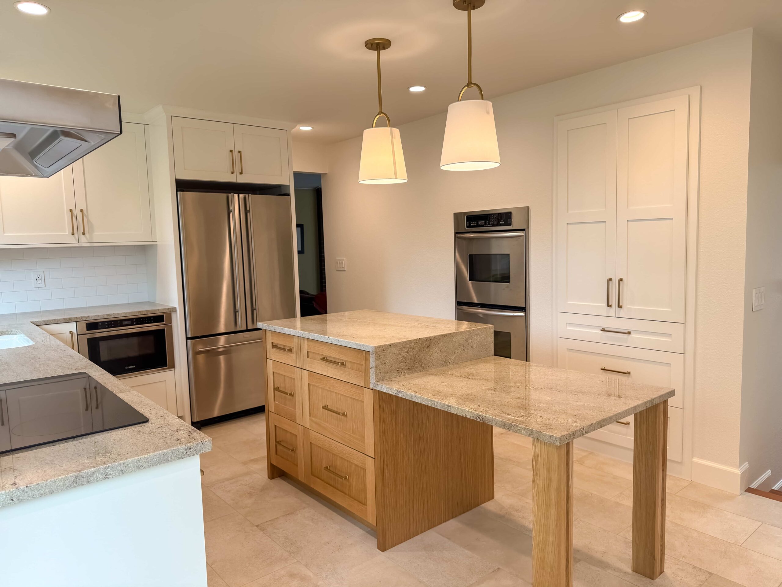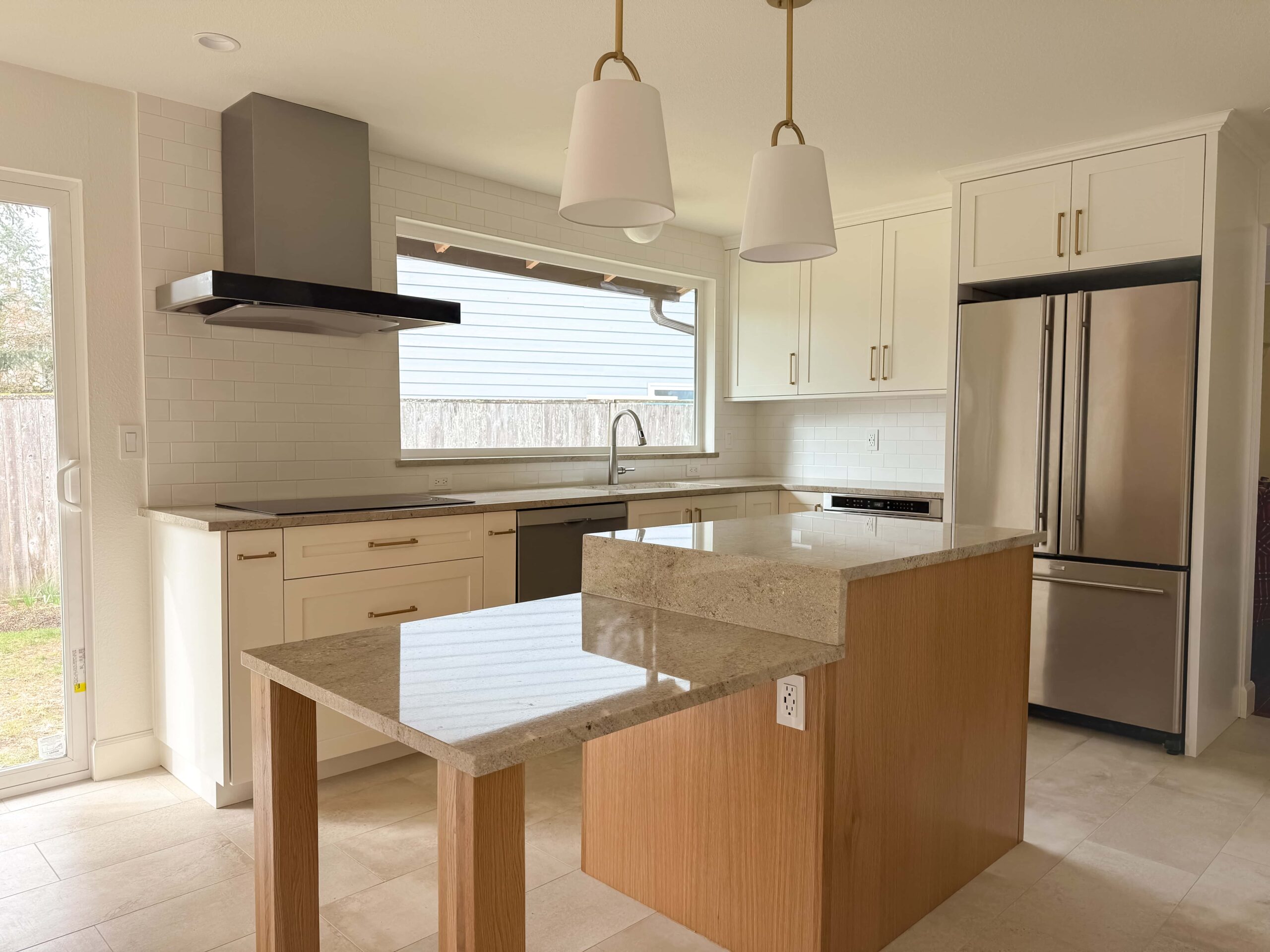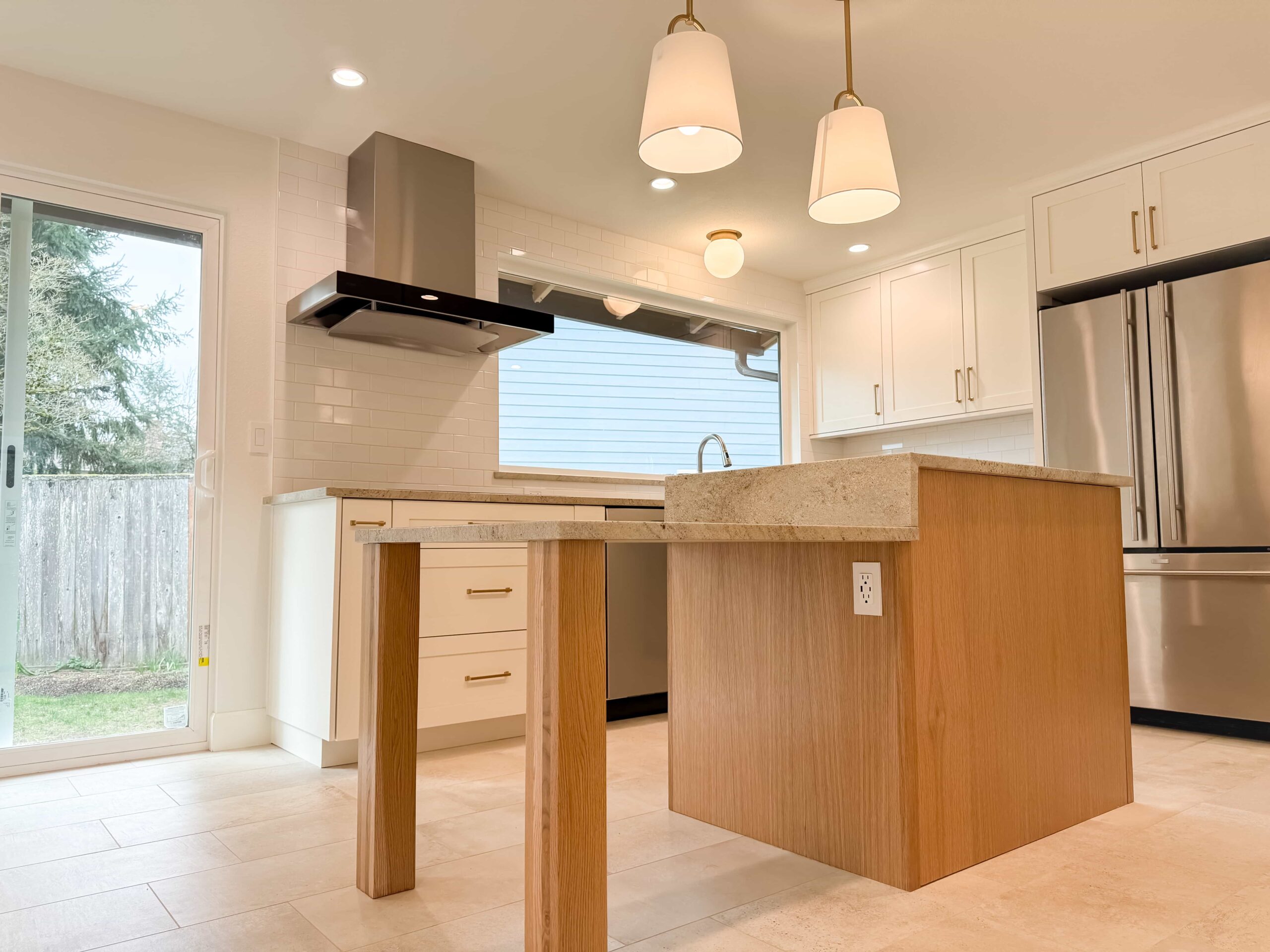 This full kitchen renovation in Redmond completely transformed an outdated space into a modern, functional, and bright kitchen. We handled every stage of the remodel – from demolition and drywall to custom cabinetry, plumbing adjustments, tile flooring, painting, countertops, backsplash, and appliance installation – creating a space that perfectly blends design and practicality.